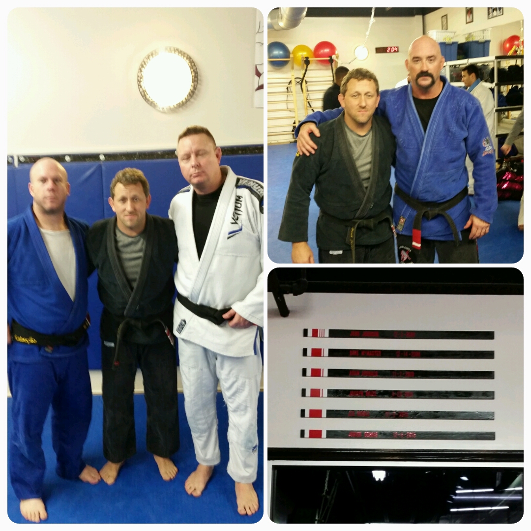 In addition to Josh receiving his 3rd stripe from Mestre Luiz Palhares, he also had the honor of graduating two new black belts among our ranks. Junior Dennis and Joe Dibble both have over a decade of training. Junior has beaten cancer and came back from back surgery to still actively train weekly. Junior is loyal to a fault having never stepped foot on another mat to train Jiu-Jitsu. Joe has been training consistently for 12 years. The only break I recall was a 4-wheeler accident back in 2006 I believe. Finally, Our old friend and training partner, Dave McMaster received his 1st stripe on his black belt! We have now produced 6 black belts!