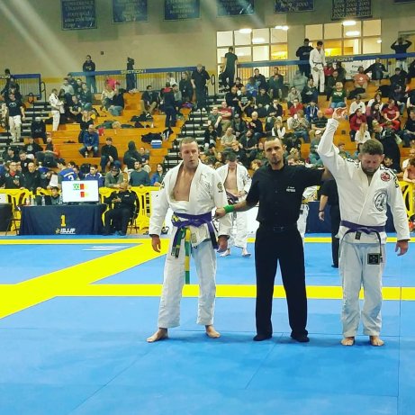 Rob Mooney 2nd place Purple Belt weight category. Finished a nice choke in his first match!
